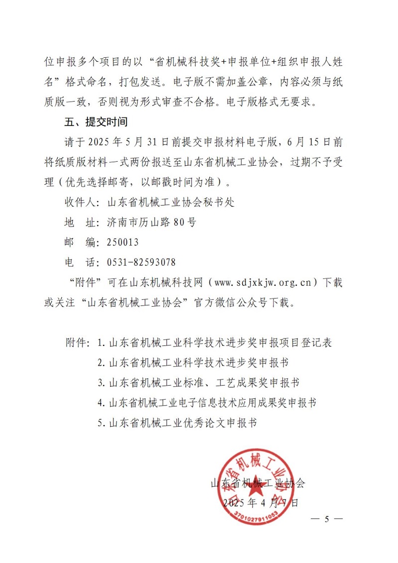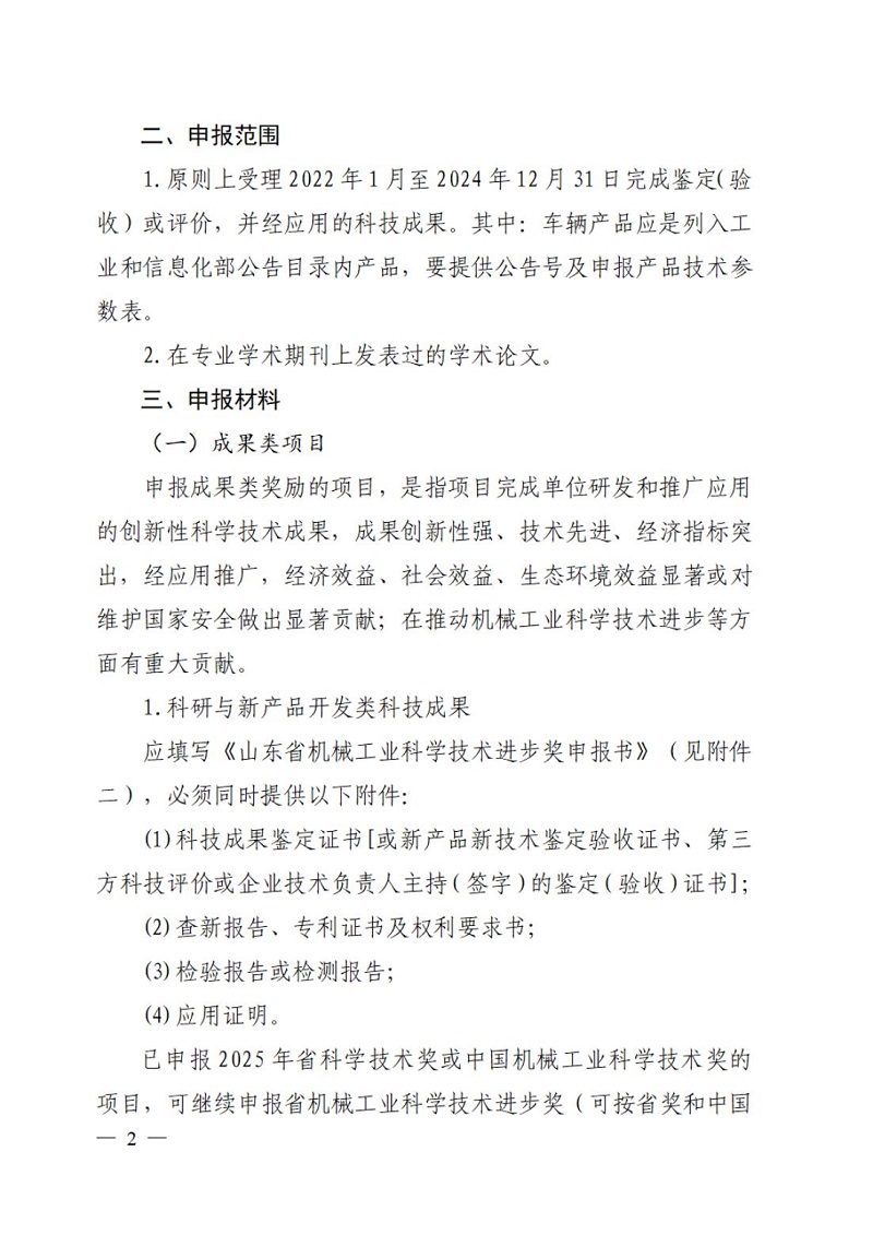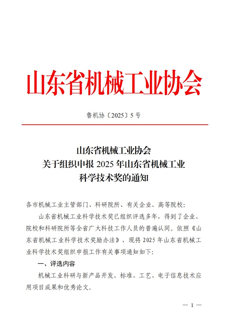山東省機(jī)械工業(yè)協(xié)會關(guān)于組織申報(bào)2025年山東省機(jī)械工業(yè)科學(xué)技術(shù)獎的通知